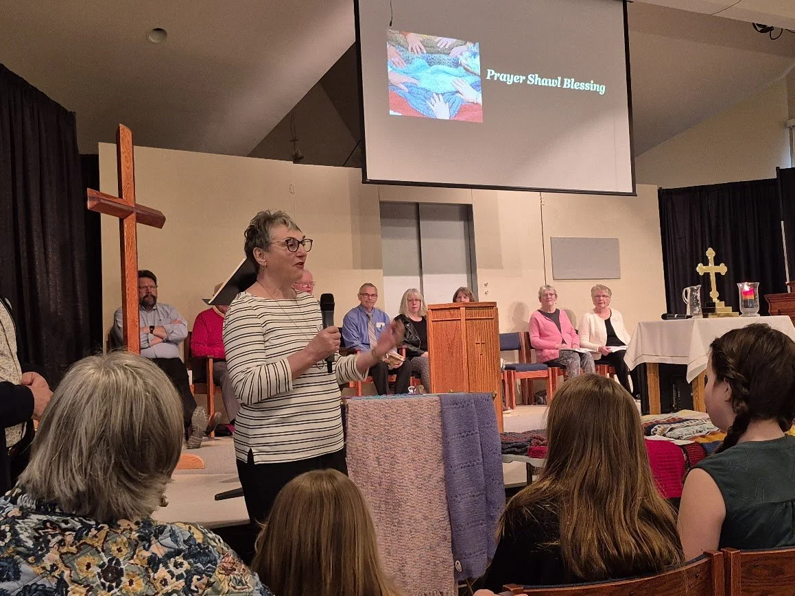 Thanks to our Prayer Shawl Ministry leader Lillian Crant-Draper (with mic) and the seven volunteer knitters who help create wonderful knitted & crocheted blankets for gifting to those in mourning/sickness. Over the past 10 years, 377 shawls have sent love from St. Luke’s to others this way. A new collection of 20 shawls were blessed by Rev. Rick with the congregation during Sunday’s service.